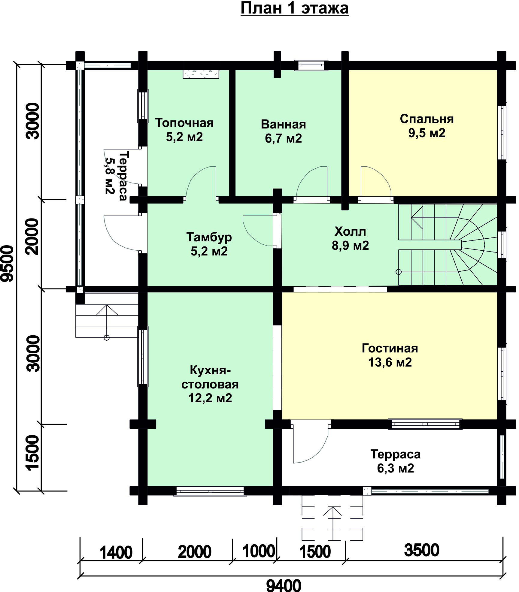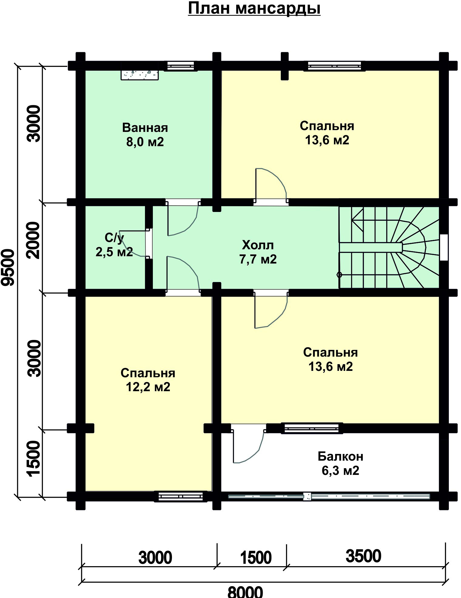 Дом 9.4 на 9.5 из бруса с балконом Б-100