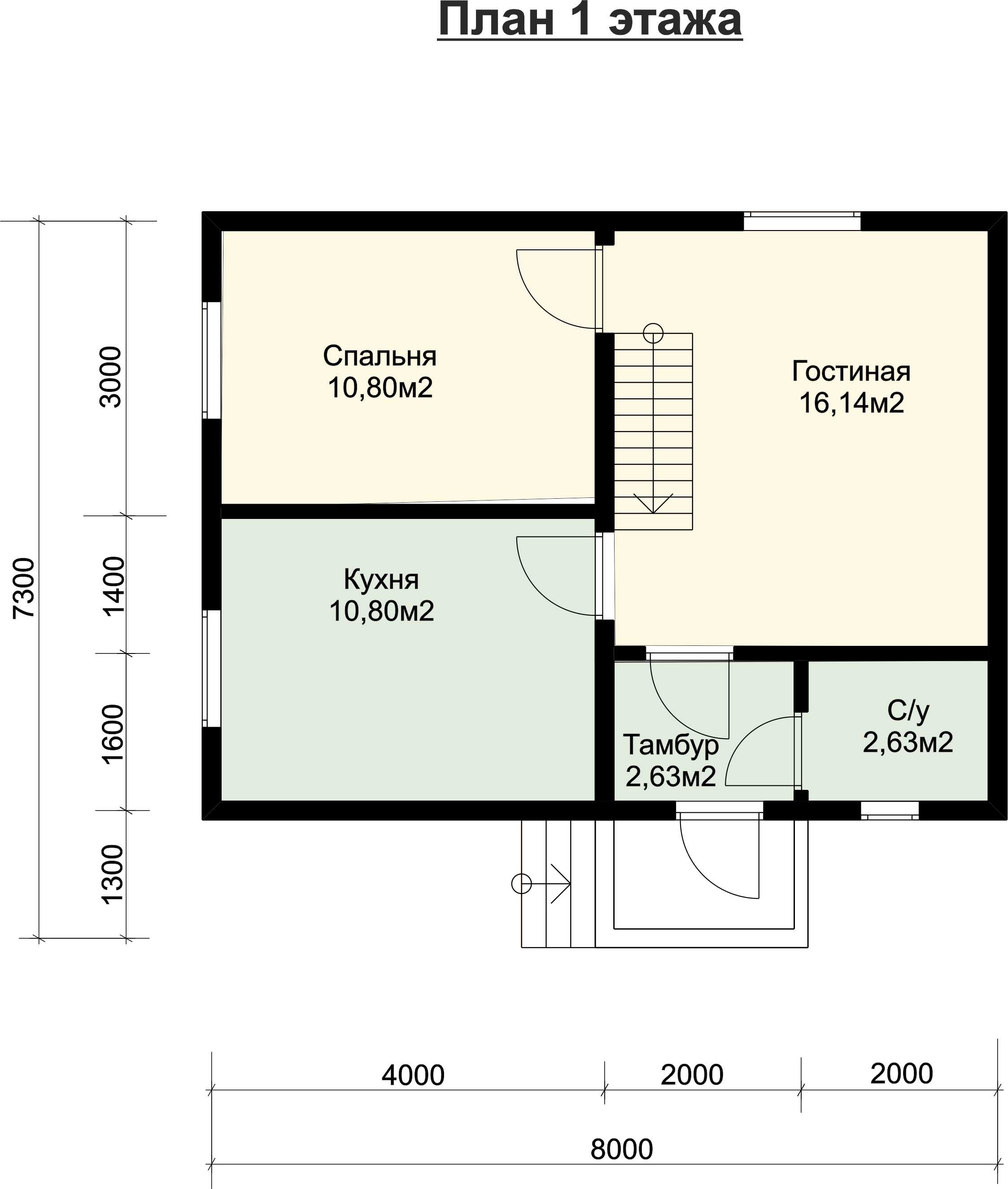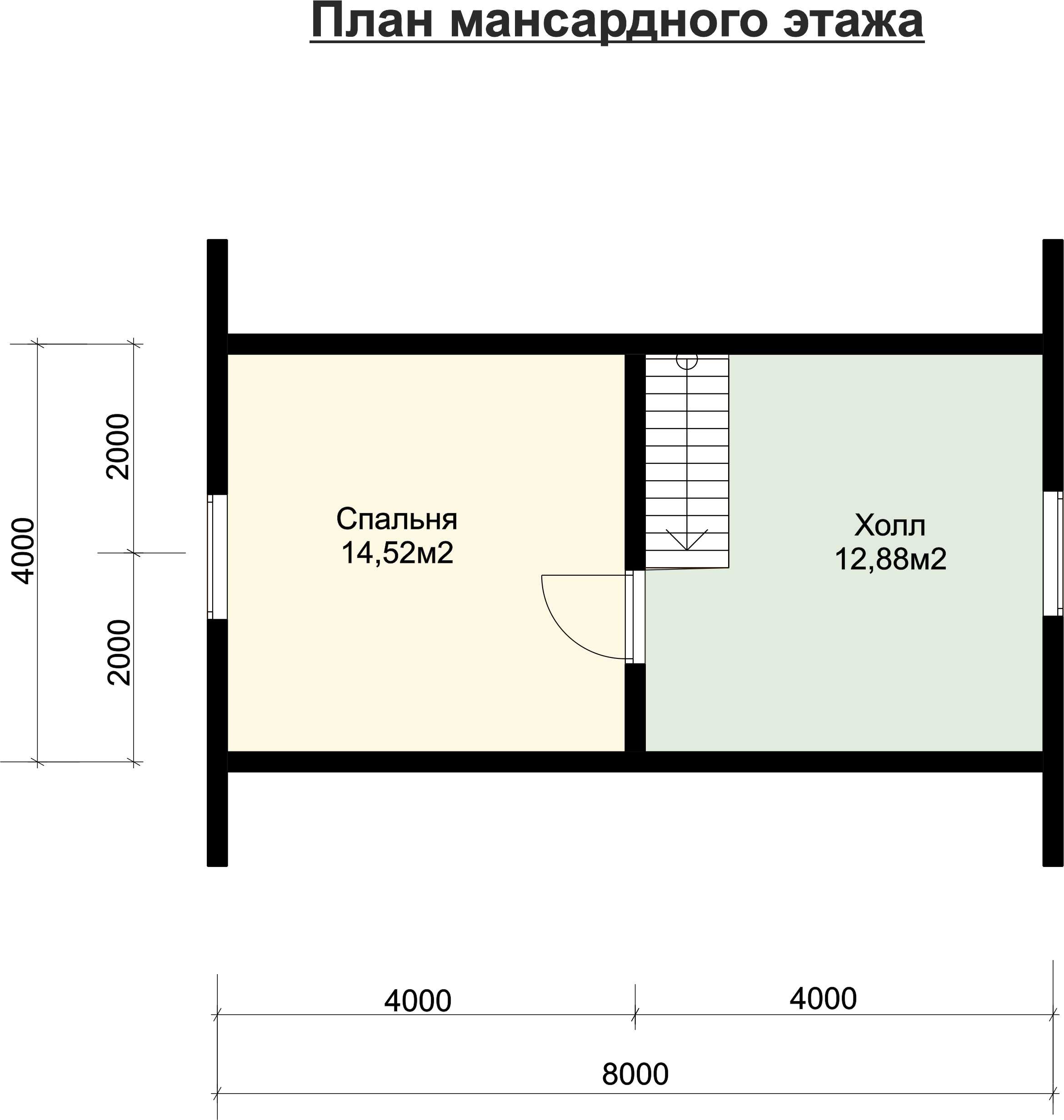 Дом из бруса 7х8 с мансардой и большой гостинной Б-006